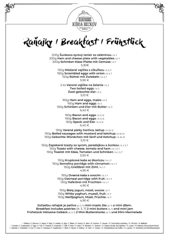 A´la Carte/Raňajkové menu